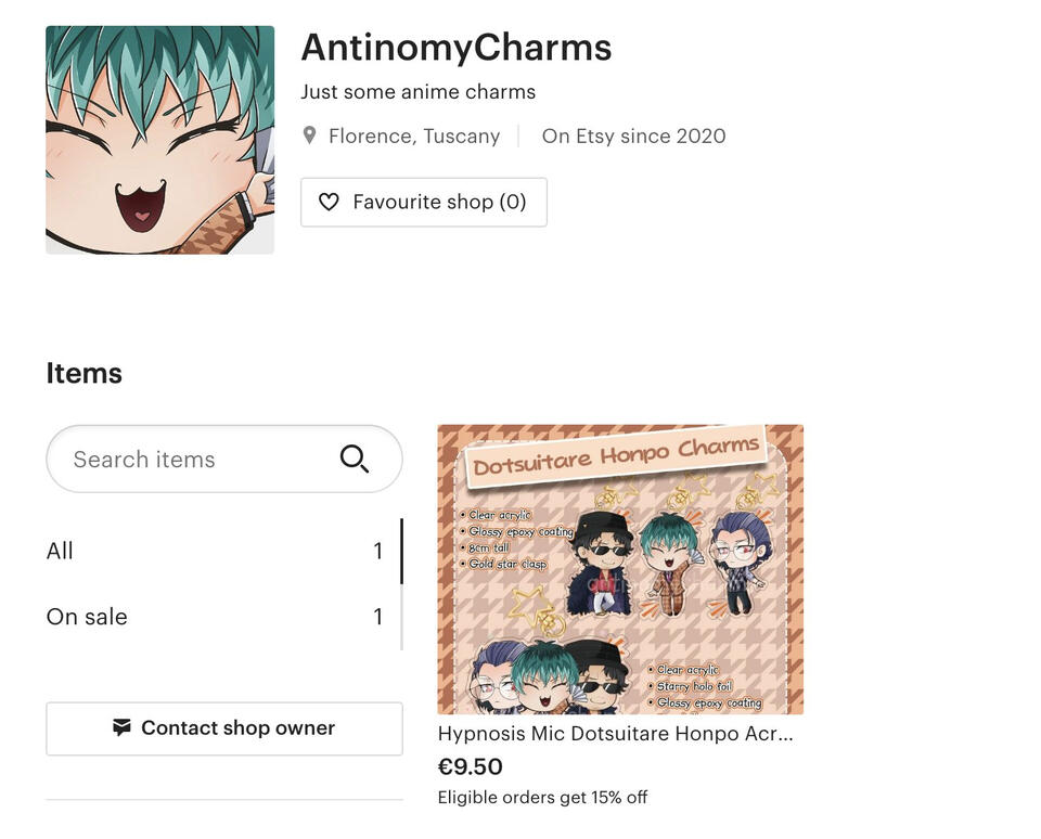 EtsyI don't really have a fancy presentation for this one; this is mainly my platform to sell and promote my fan-made merch. For now you can only find Dotsuitare Honpo charms, but in the future I def want to do more!